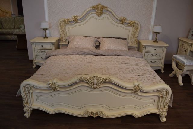 Спальня Классик 8627 – модель итальянского дизайнера, изготавливается на заводе Малайзии. Изголовье и изножье имеет шпонированный узор лепестков. Роскошная мебель для вашей спальни.