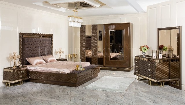 Мебель фабричного производства из Китая отличается уникальными конструкциями, оригинальными разработками в оформлении фасадов и стильными дизайнерскими решениями. Гарнитур состоит из классической кровати CF-8660, тумбочек, туалетного столика с зеркалом и пуфом и шкафа выполненных в том же стиле. Модули отличаются простотой форм, вместительностью и освежающим ореховым оттенком, поэтому идеально впишутся в интерьеры современных квартир или загородных домов. Купить модули CF-8660 можно для помещений любой площади, так как коллекцию предлагается приобрести не только в готовой комплектации, но и помодульно, что поспособствует созданию своего собственного интерьера.