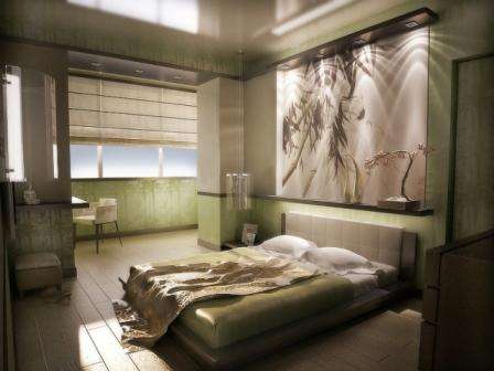 Несколько слов касательно расположения мебели в спальной комнате, и кровати в частности. Идеально, когда изголовье кровати смотрит на восток. Уютное кресло и небольшая тумбочка – замечательный дуэт, уместный в любой спальне. Наличие шкафа зависит от свободных площадей.