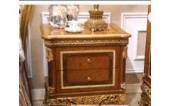 2. Тумбочка прикроватная имеет правильную форму и декоративные элементы в стиле барокко. Фрезерованные элементы и резной декор покрыты позолотой. В двух выдвижных ящиках вы можете хранить мелкие принадлежности, которые понадобятся перед сном.Так как столешница имеет скругленные углы, тумбу можно установить недалеко от кровати. Габариты: 720х480х680