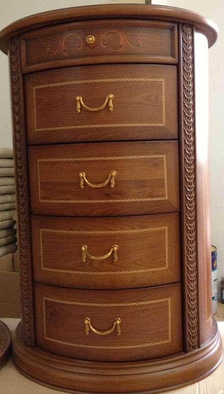 6. Классический комод высокий удобен для расположения в малогабаритных помещениях, так как имеет компактную и вместительную конструкцию. По форме напоминает цилиндр с пятью выдвижными ящиками. Размеры: 780x530x1140.