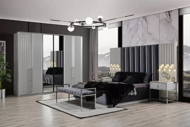 Современная спальня Триа в стиле АРТ-Деко выполнена из высококачественного МДФ. Эта спальня выполнена в сочетании серого цвета с зеркалами и нержавеющими металлическими элементами. Спальня очень гармонична по своему дизайну, что делает ее экстравагантной и красивой. Нежный серый цвет придает легкость мебели для спальни Триа. В нашем магазине мебели Вы сможете купить спальню в полном комплекте или в минимальном – кровать и 2 тумбочки. Можно отдельно купить туалетный столик или шкаф.