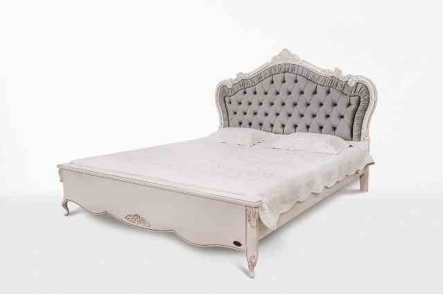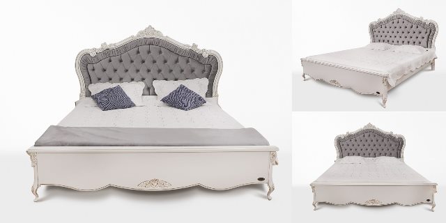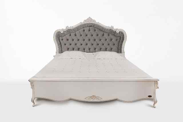 Белая резная румынская кровать Изабелла выполнена из натурального дерева бука. Мягкое изголовье обито в стиле каретной стяжки красивой велюровой тканью ( цвет ткани можно подобрать по каталогу тканей). Кровать сделана с низким изножьем, что экономит пространство в комнате и дает возможность подобрать красивое, богатое покрывало в пол.