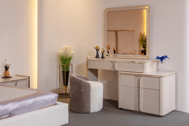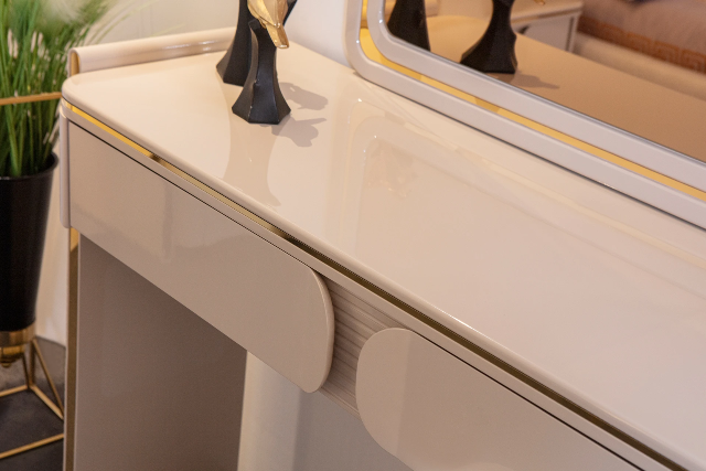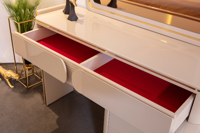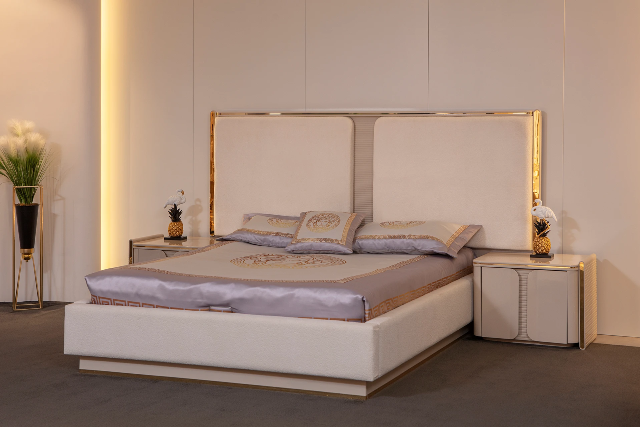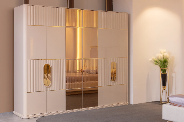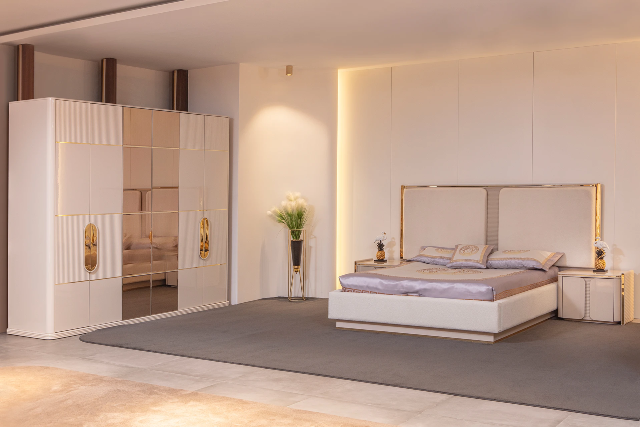 Современная глянцевая спальня Галактика от турецкой фабрики производителя Неро красиво подойдет в любой интерьер. Спальня сделана из белого МДФ с отделкой на фасадах. На первый взгыд спальня Галактика может показаться простой, но за чет белого глянцевого МДФ и декоративной отделки на фасадах она имеет свою изюменку. В комплект спальни входит- кровать, прикроватные тумбы, туалетный столик, шкаф 6 дверей.