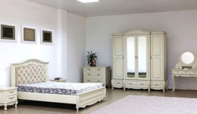 Красивая деревянная мебель для спальни Анна из натурального дерева – ольхи. Кровать с мягким изголовьем ( ткань можно выбрать по каталогу). Так же можно выбрать и цвет мебели в каталоге выкрасов.