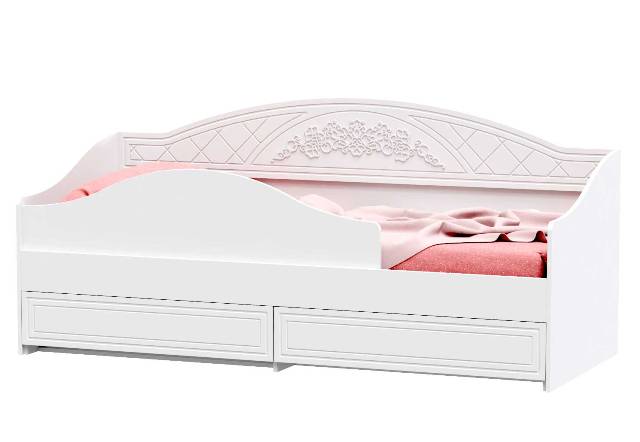 Диван-кровать Амели в белом цвете в нежном стиле Прованс сделана из МДФ. Детская кроватка Амели сделана в виде диванчика с дополнительными ящиками для белья или игрушек. Такая кроватка будет красиво смотреться в интерьере детской комнаты для девочки. Спальное место -800*2000
