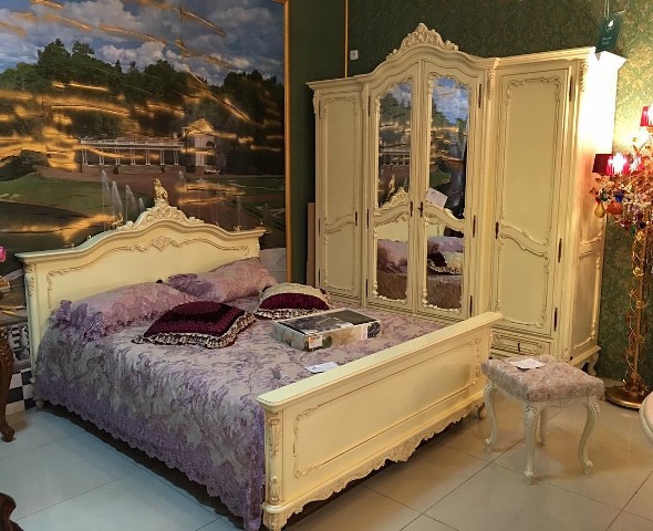 Белая классическая спальня Клеопатра из натурального дерева от румынской фабрики SIMEX представлена в нашем магазине мебели в Киеве. В комплект входят кровати разных размеров, комоды для белья, резной туалетный столик, шкафы для одежды разных размеров.
