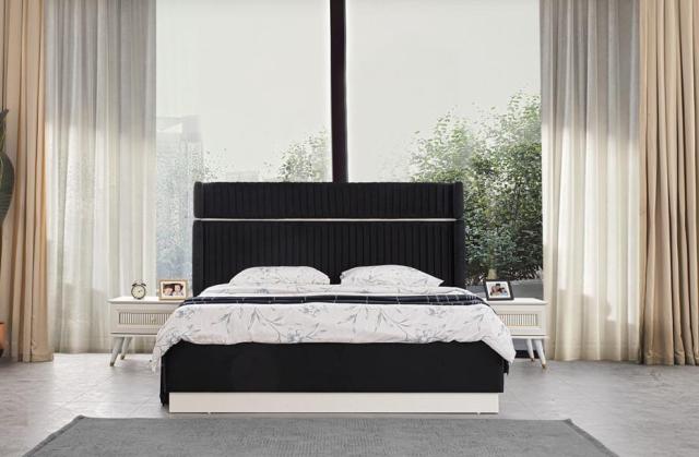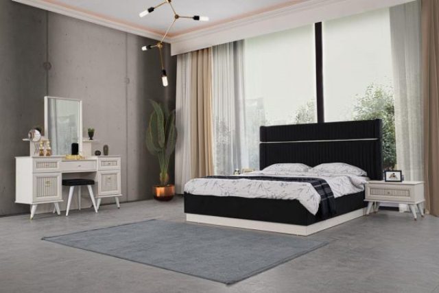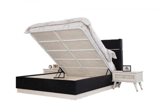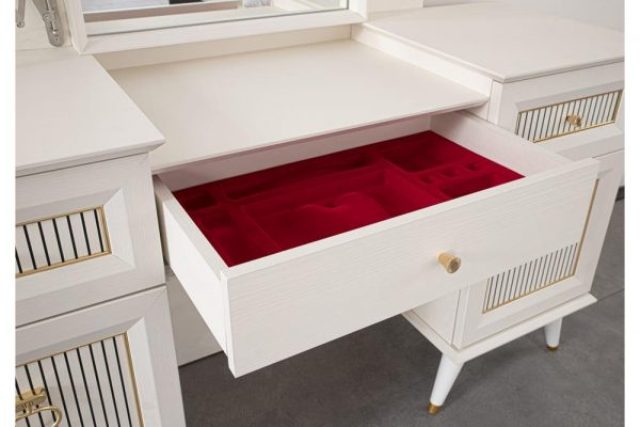 Белая мебель для спальни Стамбул сделана из белого МДФ. Спальня Стамбул сделана в белом цвете с золотой фурнитурой и отделкой. Кровать с подъемным механизмом представлена в черном цвете ( цвет кровати можно выбрать по каталогу).