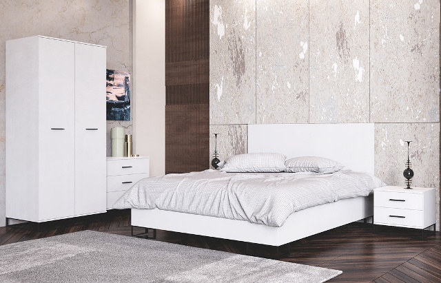 Белая мебель для спальни Белый Бриллиант в стиле модерн сделана из ДСП высокого качества 16 мл. В этой коллекции мебели есть кровати разных размеров, что дает возможность обставить интерьер взрослой спальни, детской и подростковой комнаты. В этой коллекции есть и письменные столы и этажерки, которые дают возможность обустроить рабочее место.