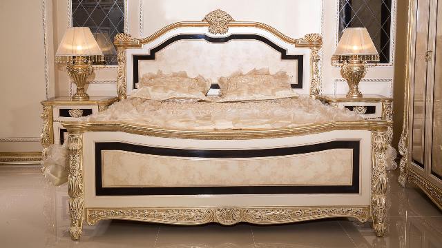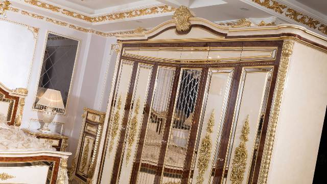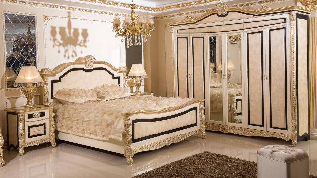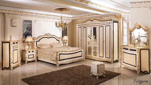 Белая спальня Визион с золотом в стиле венецианского барокко представлена в нашем магазине мебели для спальни в Киеве. Спальня сделана из дерева и МДФ. Такая спальня красиво украсит интерьер Вашей спальни. Спальня может быть в двух отделках. Отделку спальни Вы можете увидеть на фото. Дополнительную информацию уточняйте у менеджера компании.
