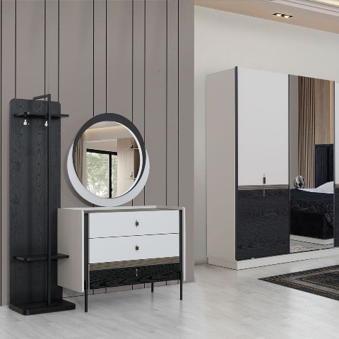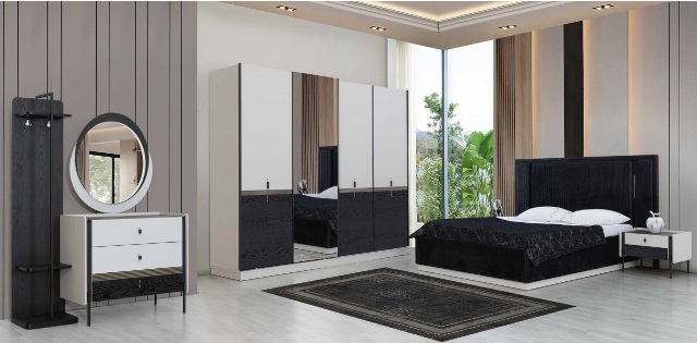 Спальню Орландо в сочетании белого и черного цветов можно купить в нашем магазине мебели в Киеве. Спальня сделана на турецкой фабрике из МДФ высокого качества.