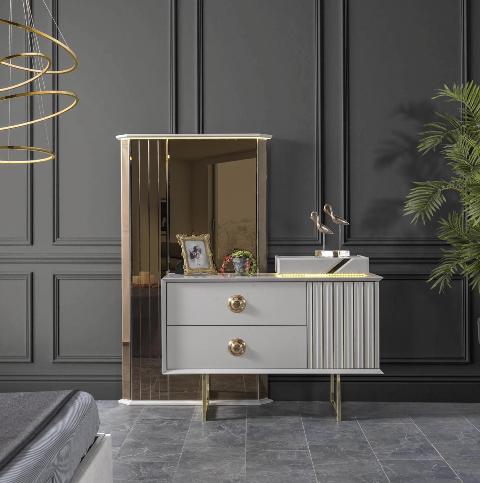 Белое трюмо с зеркалом в спальню Астана. Такое трюмо можно купить отдельно из комплекта спальни и оно подойдет и в прихожую и в коридор и в зал.