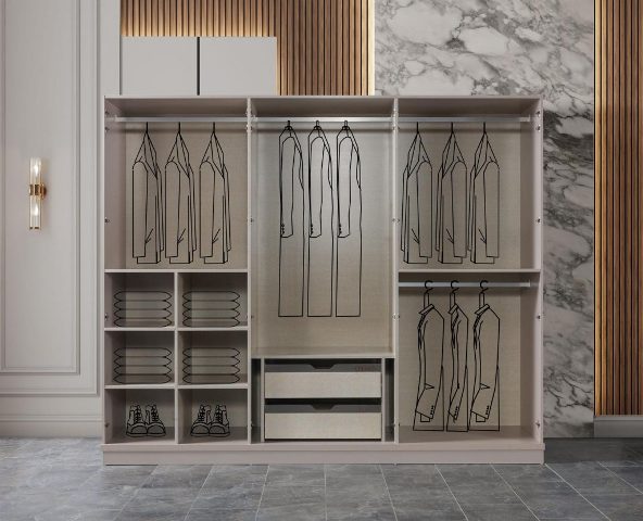 Белый шкаф Валенсия из МДФ от турецкой фабрики производителя Вы сможете купить в нашем магазине мебели в Киеве. Шкаф представлен как шестидверный – центральные двери шкафа зеркальные, боковые двери украшены декором ” квадрат” на фасадах. Шкаф полностью укомплектован всеми местами для хранения – полки, ящики, штанги для вешалок.