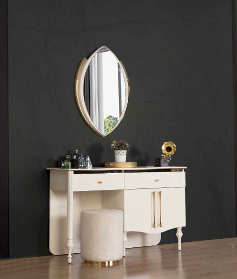 Столик идет в комплекте с зеркалом и пуфом.