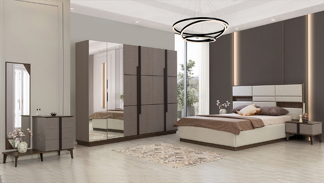Спальня Осло от турецкой фабрики производителя представлена в нашем магазине мебели в Киеве. Спальня сделана из МДФ высокого качесвта в цвете беж, мокко. В комплект входит – двухспальная кровать, 2 тумбочки, комод с зеркалом, шкаф для одежды.