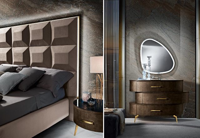 Итальянская спальня INCANTO, что в переводе означает Очарование полностью оправдывает свое название. Спальня сделана из натурального дерева и МДФ в стиле модерн. Прямое мягкое изголовье сделано в виде объемных мягких панелей с подсветкой. Туалетный столик сделан в обтекаемой форме линий, что привностит в интерьер красоты и изысканности. Большой шкаф-купе сделан с зеркальными фасадами и полноценным большим местом для хранения.