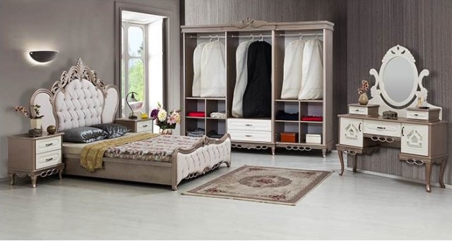Классическая мебель для спальни Годзе от турецкой фабрики производителя представлена в нашем магазине мебели в комплекте- кровать 1600, 2 тумбочки, туалетный столик, шкаф 6 дверей.