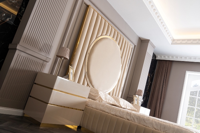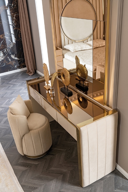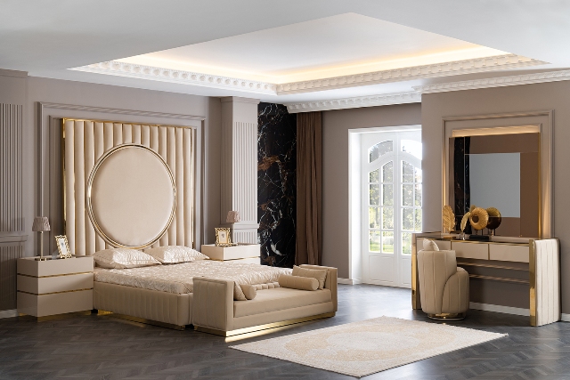 Бежевая спальня с золотом Рейн, АРТ-Деко