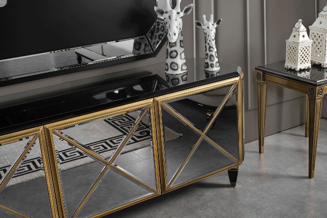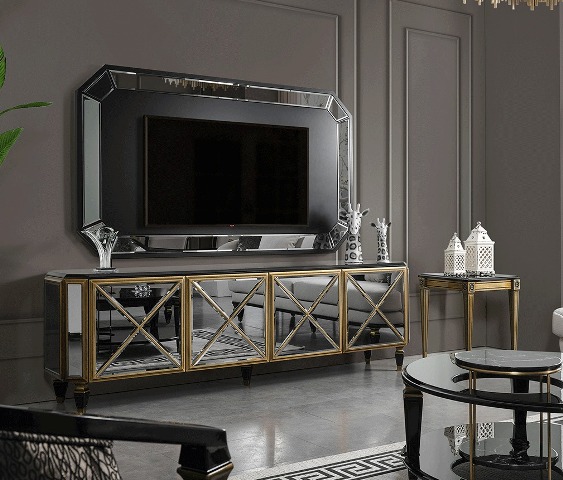 Черная зеркальная ТВ тумба Пикассо, NEW