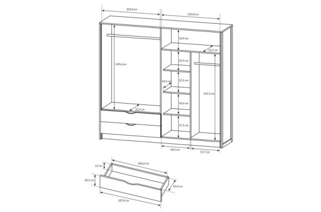 Шкаф сделан из ЛДСП 16 см в сочетании цветов ДУБ САНД ГРАНЖ/МАТЕРА. На фасаде есть зеркало. Подсветку можно установить дополнительно. Такой шкаф прекрасно подойдет в спальню,в детскую или подростковую комнату, в прихожую, в коридор. Шкаф подойдет под стиль – минимализм, скандинавский, модерн.