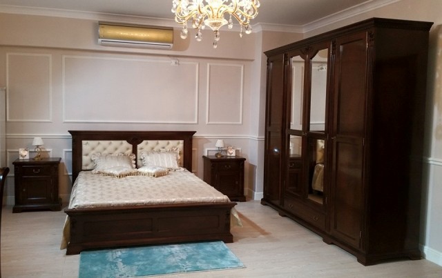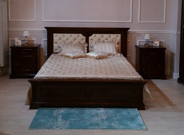 Классическая деревянная мебель для спальни Виктория от румынской фабрики производителя ARDUDANA. Спальню можно заказать в любом цвете который подходит к Вашему интерьеру. В темной цветовой гамме красиво просматривается текстура дерева на фасадах. Комплект можно подбирать по Вашему желанию.