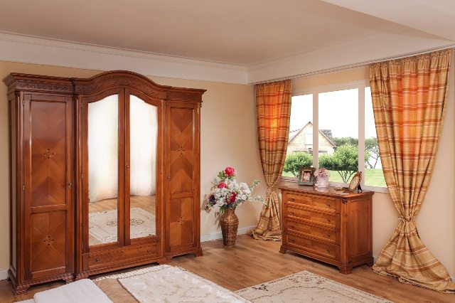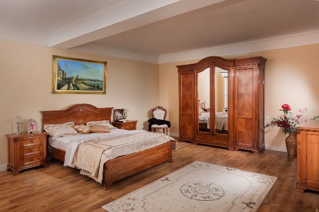 Деревянная мебель в спальню Донателло из натурального дерева от румынской фабрики производителя. На фасадах мебели выложены красивые узоры, что делает мебель красивой и привлекательной. Спальню можно заказать полным комплектом или заказать отдельные элементы мебели.