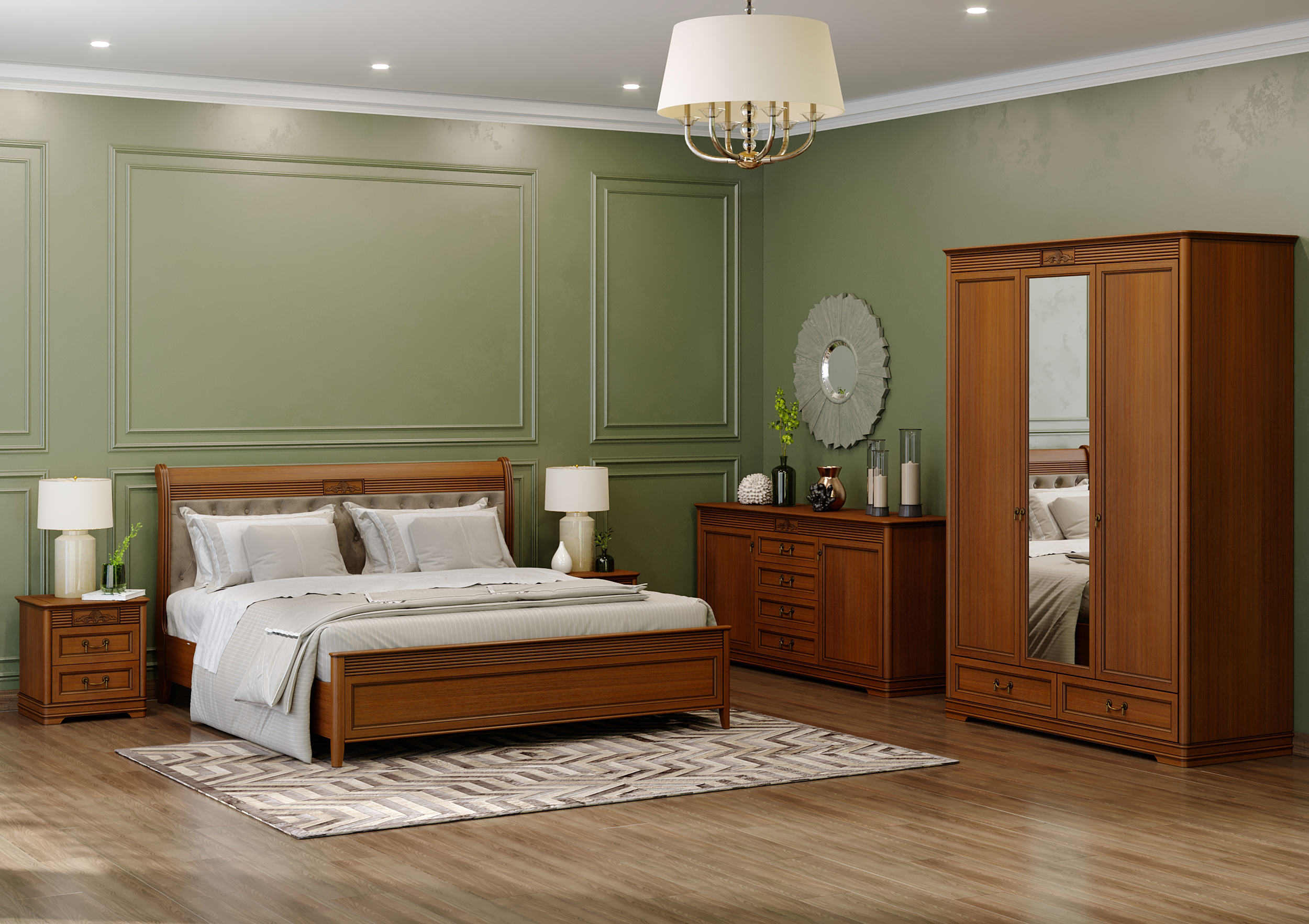 Спальня Тоскана сделана в классическом стиле из массива ясеня. В этом комплекте Вы найдете кровати разных размером, шкафы с зеркалами и без зеркал, комоды, туалетные столики, банкетки. С таким множеством элементов разных размеров можно с легкостью обставить детскую и подростковую комнату, гостевую комнату и хозяйскую спальню. Что характерно для спальни Тоскана в подростковую комнату можно дополнительно заказать письменный стол и книжный шкаф.