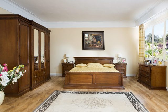 Классический комплект румынской мебели для спальни Донателло представлена в нашем магазине мебели в Киеве. Вы сможете выбрать кровать нужного размера из коллекции Донателло. Шкаф который Вам подойдет по размеру. Шкафы есть распашные и шкафы-купе. Так же можно выбрать цвет мебели – орех, белый, крем с золотой патиной или без патины.
