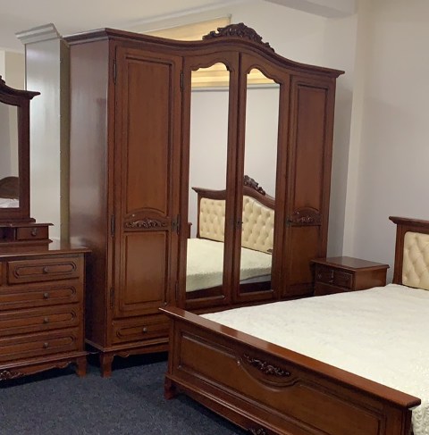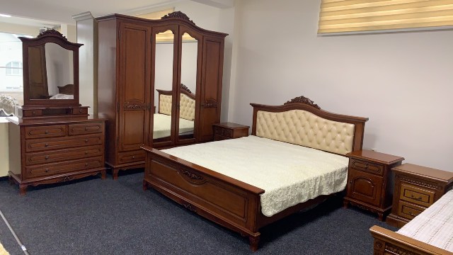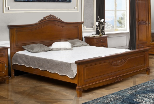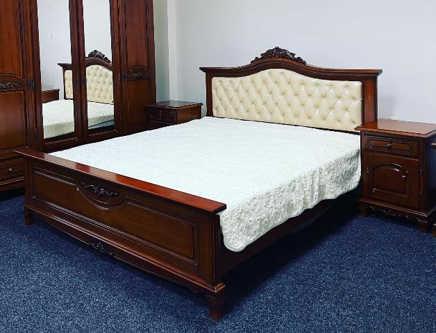Классическая румынская мебель из натурального дерева Элипс в цвете орех. Кровать представлена в размере 1600*2000 и 1800*2000. Можно выбрать двухспальную кровать Элипс с мягким изголовьем ( ткань, кожа) или с твердым изголовьем.