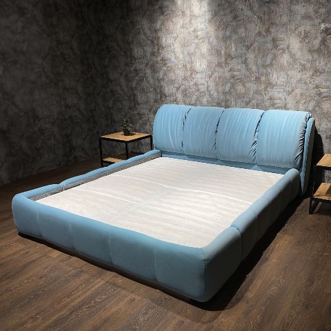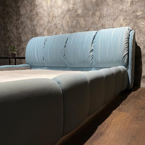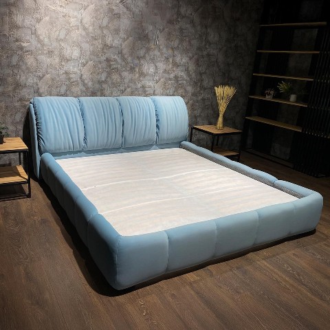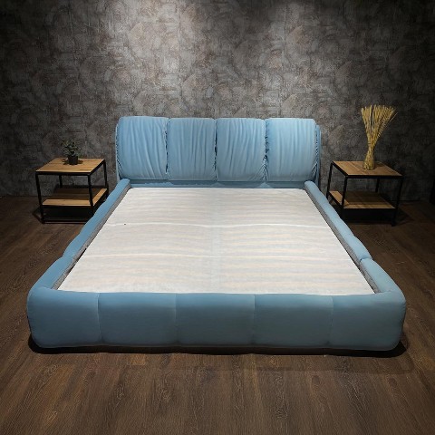Голубая мягкая двухспальная кровать Лагуна L 055, Р