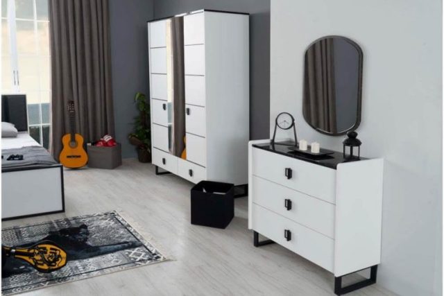 Интересная комбинация белого МДФ и черной фурнитуры делает эту модель стильной и красивой.