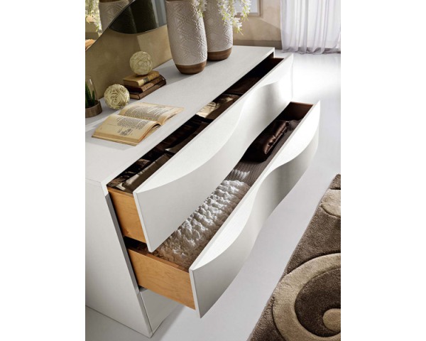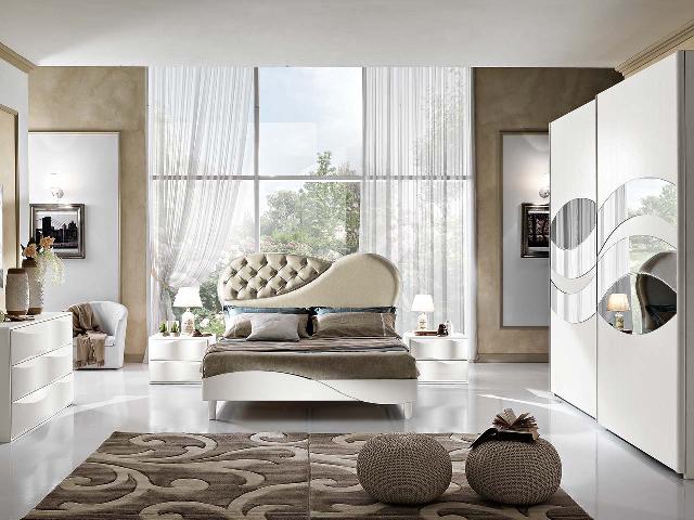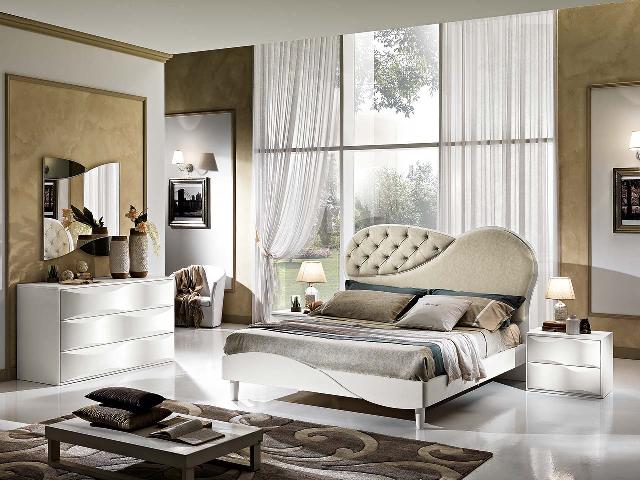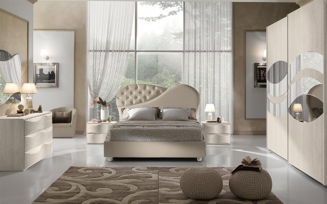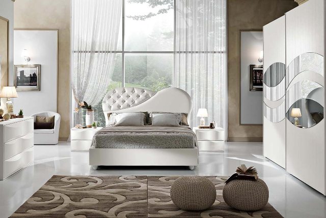 Светлая мебель для спальни Примароза от итальянской фабрики MOBILPIU. Спальня выполнена в современном стиле из натурального дерева и МДФ. Красивые нежные формы мебели подчеркнут легкость интерьера. Мягкое изголовья кровати выполнено в сочетании прямой оббивки и капитоне. Цвет Вы сможете подобрать так как эта коллекция представлена фабрикой производителем в двух цветах- белый, крем.