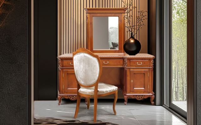 Стильная, красивая мебель для спальни Виктория Люкс сделана из натурального дерева бук. Спальня выполнена в классическом стиле, что делает мебель актуальной на долгие годы. Кровать Виктория Люкс сделана с красивым твердым изголовьем с декором. Такой декор присутствует на фасадах всей коллекции спальни. Спальню можко купить полным комплектом или отдельными единицпми мебели. Доставка по всей Украине и странам Европы.