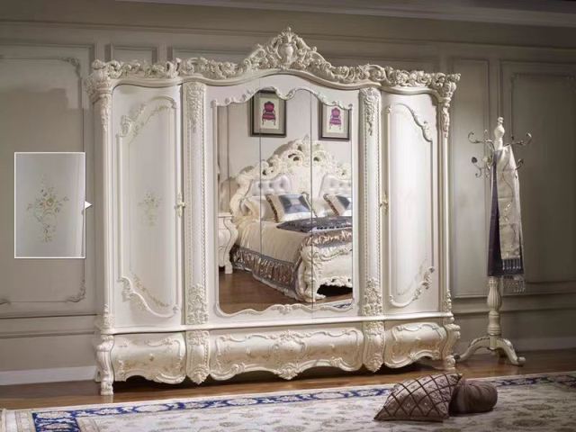 Классическая резная мебель для спальни Элиза в стиле барокко производство Китай. Представлена в нашем магазине мебели в комплект Кровать 1800*2000, 2 тумбочки, туалетный стол с зеркалом, пуф, шкаф 5 дверей. Такая мебель будет стильно и красиво смотреться в Вашей спальной комнате. Резные узоры на фасадах дополняются цветочными инсталяциями, что делает эту коллекцию мебели для спальни нежной и богатой одновременно.