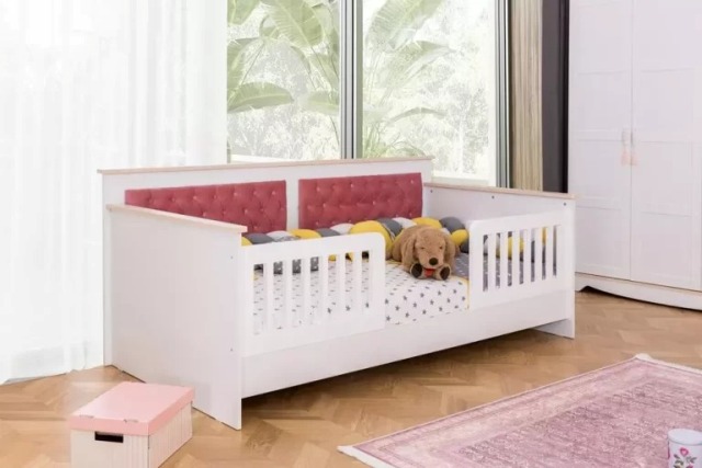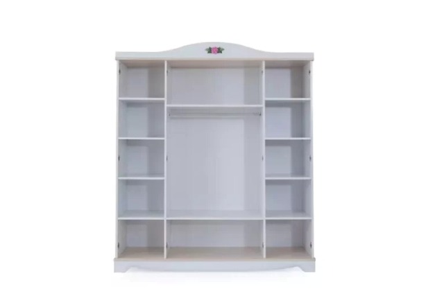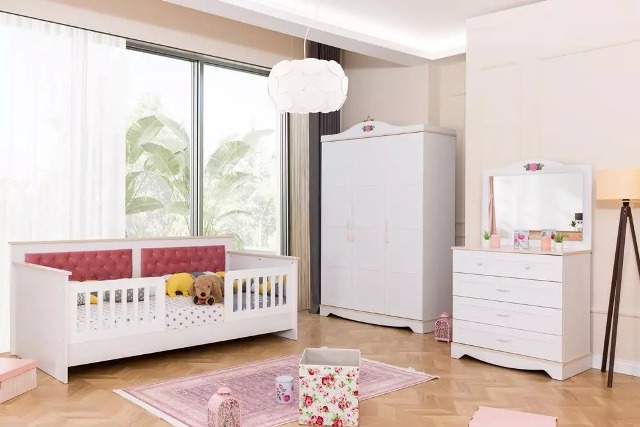 Классическая мебель для спальни Лара сделана из высококачественного МДФ белого цвета. В этой коллекции есть диван-софа, кроватка с подъемным механизмом или кроватка с ящиком для белья, письменный стол, шкафы разных размеров, комод для белья.