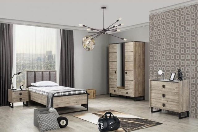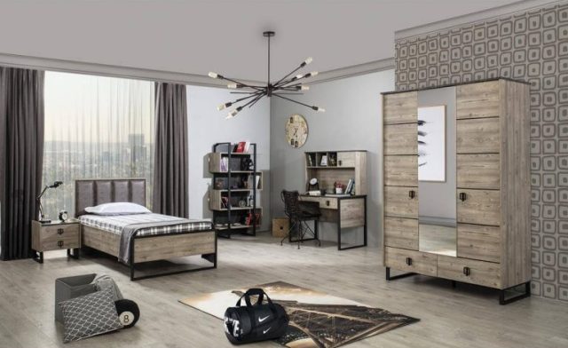 Мебель для детской комнаты Мозаика сделана в современном стиле. В этом комплекте мебели есть все необходимое для ребенка-кровать, тумбочки прикроватные, комод для белья, письменный стол, книжный шкаф, шкафы для одежды. Мебель Мозаика представлена как молодежная комната для мальчиков.