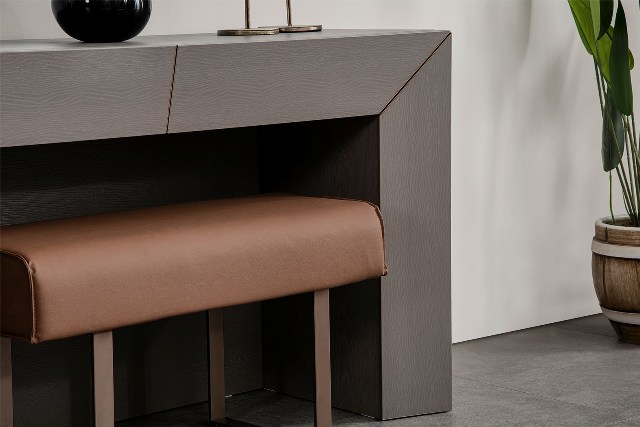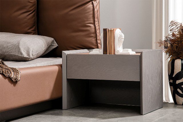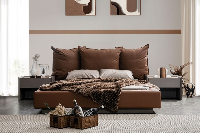 Спальня привлекает комбинацией цветов – нежно графитового и коричневого, что хорошо сочетается между собой и прекрасно будет смотреться в любом интерьере.