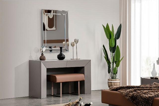 Стильная спальня Оливия в стиле модерн сделана из МДФ высокого качества в сером цвете. Такая спальня прекрасно подойдет в молодежную комнату. В комплект спальни входите мягкая кровать из эко-кожи.Для изготовления кровати используется эко-кожа нового образца – не трескается в процессе эксплуатации, теплая на ощупь, имеет большой цикл износа более 50 000 циклов.