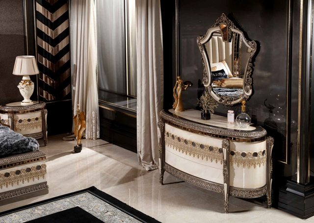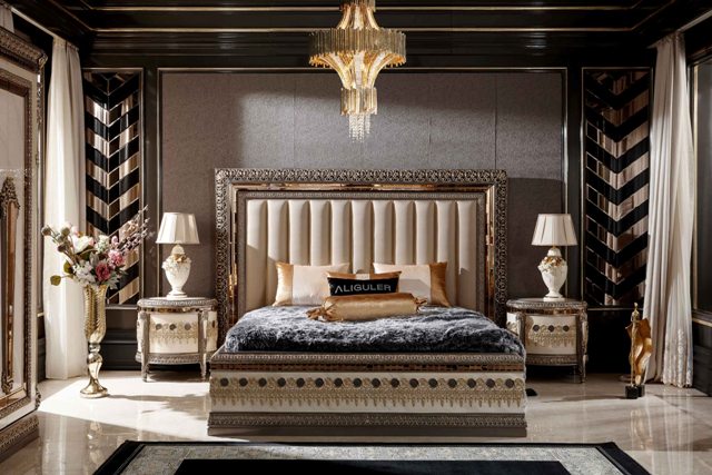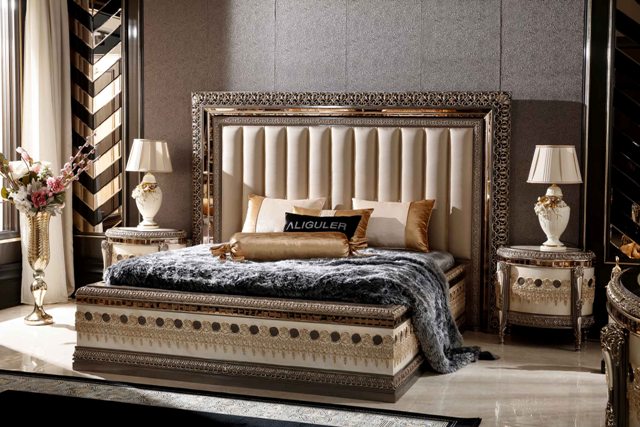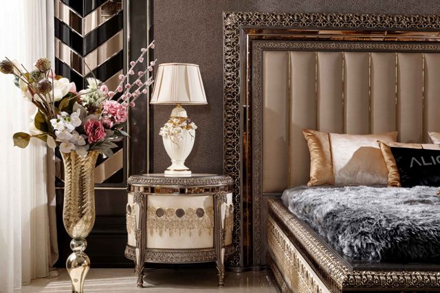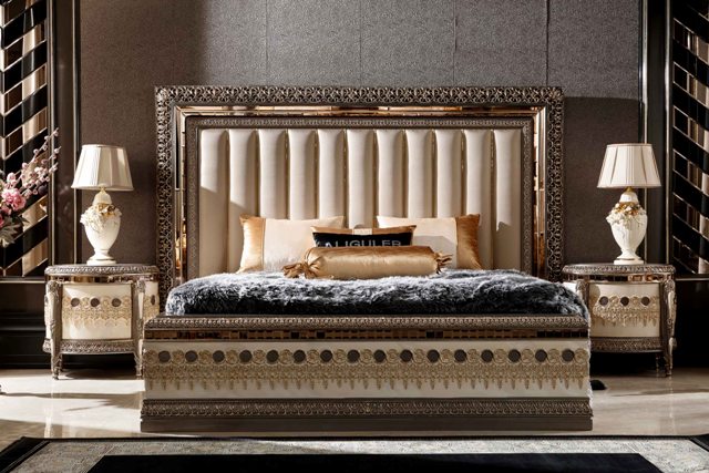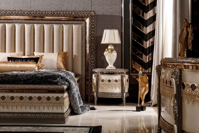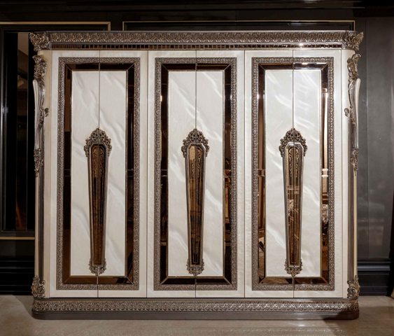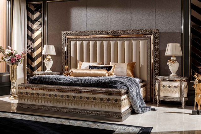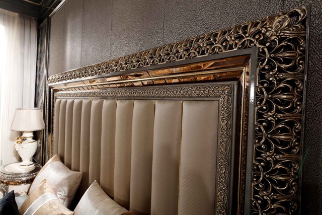 Спальня Глория в стиле модерн с элементами АРТ-Деко такая спальня красиво встанет в любой цветовой интерьер комнаты. Спальня выполнена из дерева и МДФ в сочетании коричневого и бежевого цвета с декором из золота. Золото в сдержанных тонах и только подчеркивает дизайн мебели делая его богатым и утонченным. Можно купить полный комплект мебели или купить отдельные единицы мебели.