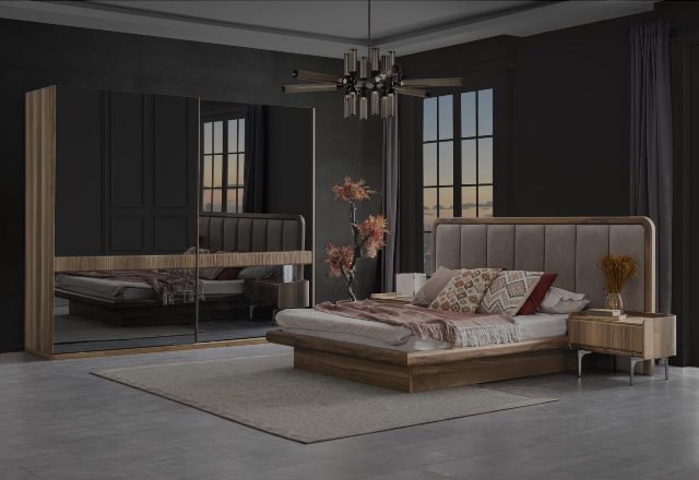 Спальня Токио от турецкой мебельной фабрики можно купить в нашем магазине мебели в Киеве. Спальня выполнена из Мдф высокого качества с дизайнерской отделкой на фасадах. Двухспальная кровать с подъемным механизмом отделано мягким изголовьем с декором полоса.Большой двухдверный шкаф-купе с зеркалами полностью укомплектован ящиками, полками, штангой для вешалок. Ножки в мебели сделаны из хромированного железа, что делает мебель устойчивой и дополнительно является красивым декором спальни.