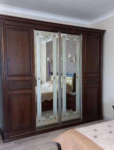 Спальню Фаворит можно заказать и в белом цвете с патиной – золото или серебро.