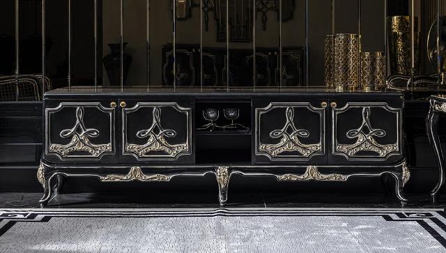 Черная тумба под телевизор Пикассо сделана в стиле барокко с золотой патиной. Размеры ТВ тумбы довольно большие 200*55*62 , но своей красотой она подчеркнет интерьер Вашей спальни, гостиной, кабинета.