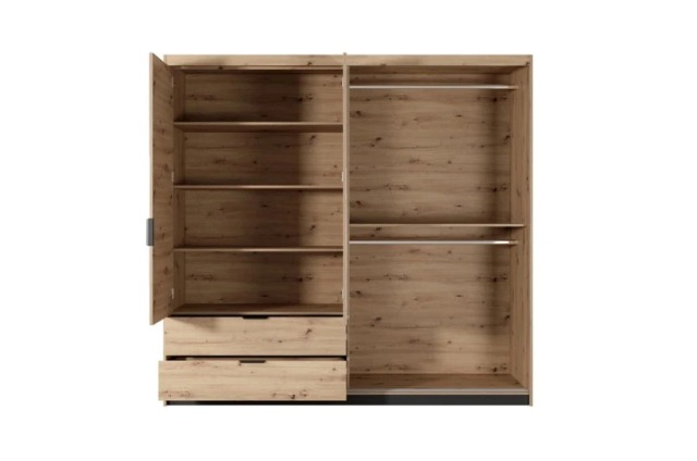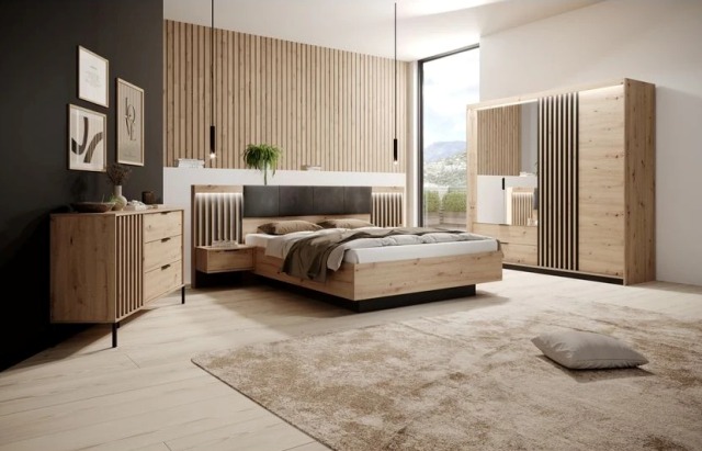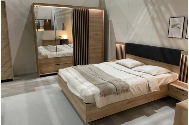 Купить современную мебель для спальни можно в нашем магазине мебели в Киеве. Польская спальня Талли выполнена в скандинавском стиле в сочетании черного цвета и цвета натурального дерева. Двухспальная кровать Талли идет в размере спального места 1600*2000 и может быть оснащена подъемным механизмом. На изголовье кровати установлена подсветка. Удобный большой шкаф полностью укомплектован – ящики, штанги для вешалок, полки.