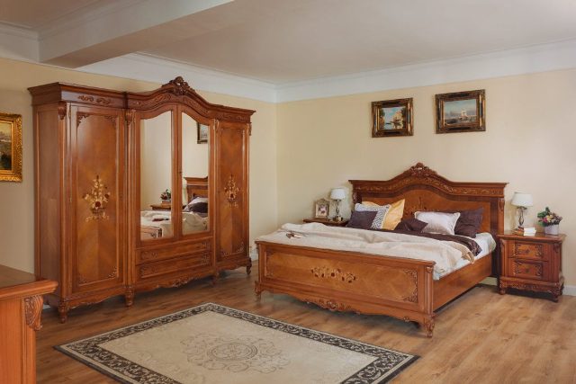 Красивая элитная мебель для спальни Принцесса от румынской фабрики производителя представлена в нашем интернет-магазине мебели в Киеве. Спальня сделана из натурального дерева -бук. Все фасады мебели отделаны инкрустацией в виде цветочных узоров. Такая мебель красиво украсит интерьер Вашей спальни и простужит долгие годы.