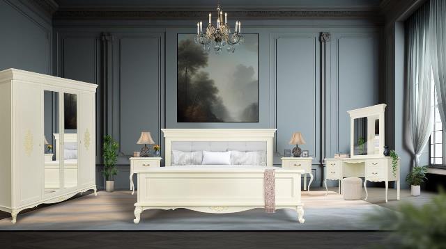 Красивая румынская спальня Сабина из натурального дерева -бук. Спальню можно заказывать полным комплектом или по единицам мебели отдельно. Спальня может быть в светлых и темных цыетах согласно каталогу. Можно заказать спальню с патиной серебро или золото или в одном однотонном цвете. Обивку можно подобрать по каталогу тканей.