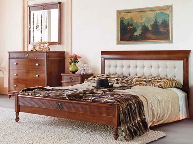 Румынская кровать с кожаным изголовьем Мария Сильва