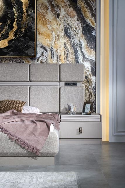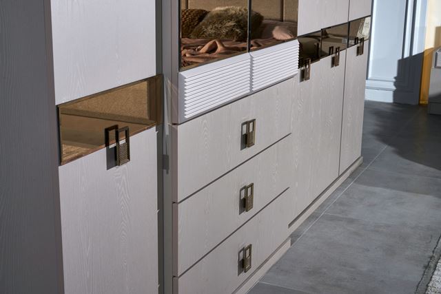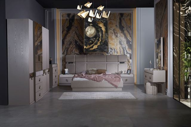 Красивая спальня в стиле модерн из высококачественного МДФ от турецкой фабрики производителя представлена в нашем магазине мебели в Киеве. Спальня Лара привлекает своими прямыми формами с лаконичными отделками фурнитурой. Спальню можно заказать полным комплектом или минимальным кровать и 2 тумбочки.