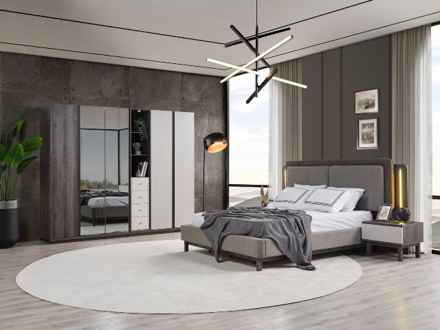 Современная спальня в пастельных цветах Натура сделана из МДФ высокого качества. Кровать в спальне Натура сделана с подъемным механизмом с большим местом для хранения. Компактный и очень удобный туалетный столик хорошо подчеркнет интерьер Вашей спальни. Шкаф можно подобрать по Вашим размерам так как эта модель шкафа идет модульная. Спальню можно покупать полным комплектом или минимальным – кровать и 2 тумбочки.