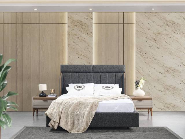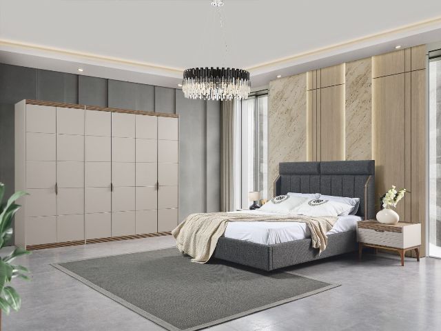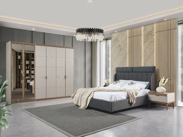 Современный мебельный гарнитур Асос сделан из высококачественного МДФ в стиле модерн. Спальня сделана в универсальном стиле. Подойдет в молодежную комнату и во взрослую спальню. Кровать можно сделать в любой другой ткани по каталогу. Основные части мебели идут неизменными. Шкаф можно выбрать по Вашему размеру.
