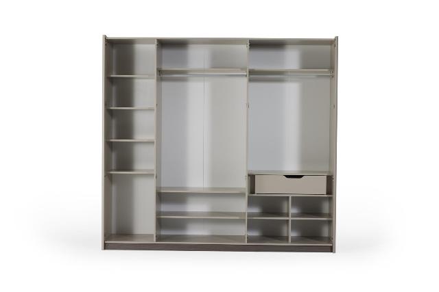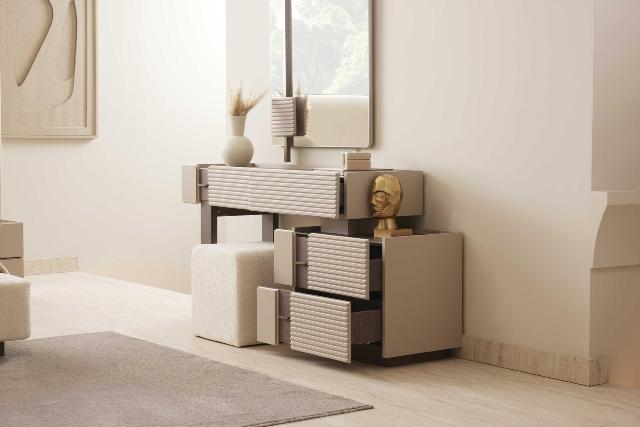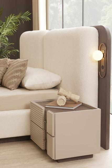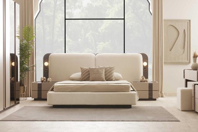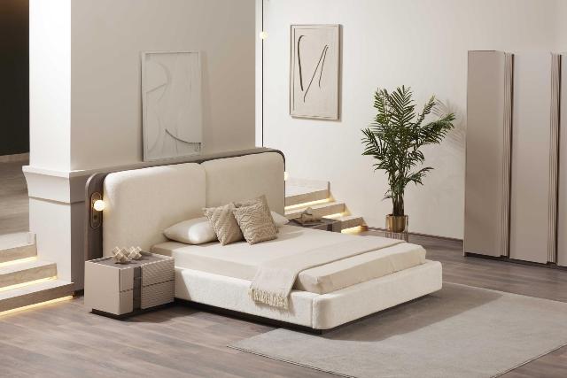Современная мебель для спальни Лион представлена в нашем магазине мебели в Киеве. Спальня интересна тем, что идет в сочетании кремового цвете и мокко и это дает универсальность этой мебели. Сдержаная мягкая кровать сделана с подъемным механизмом и нишей для хранения. На изголовье кровати установлены ночники, что дает не только красивый эстетический эффет но и практический – подсветка изголовья.